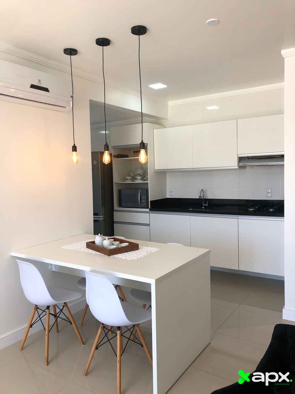 linda cozinha planejada estilo americana, integrado com mesa de jantar ;