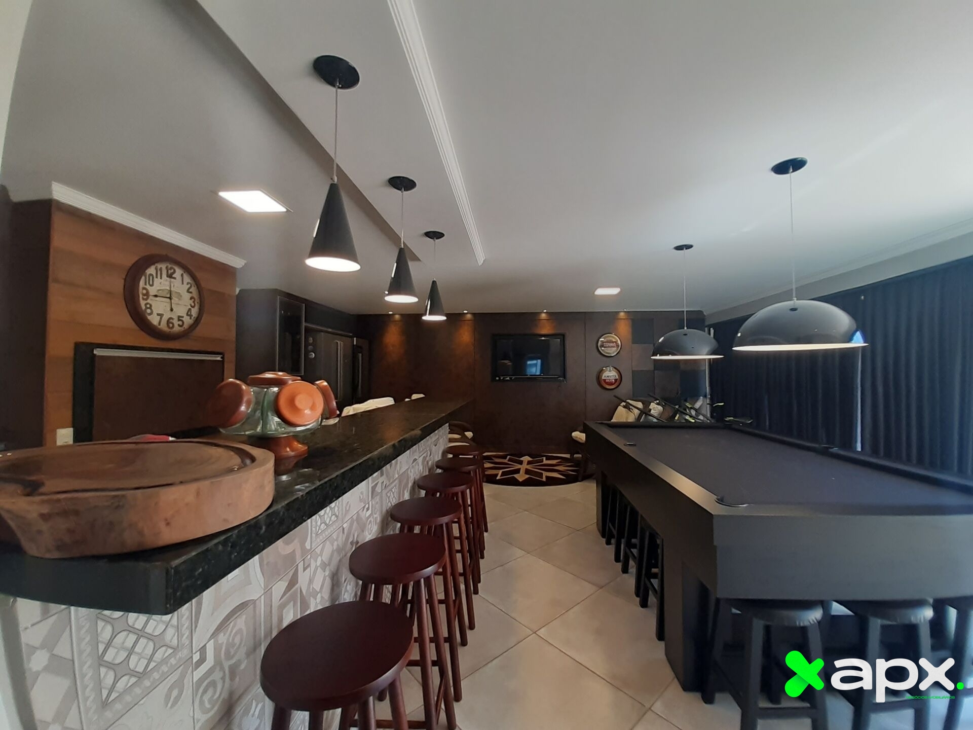 Excelente Salão de festas, com churrasqueira rotativa, fogão campeiro e móveis planejados;